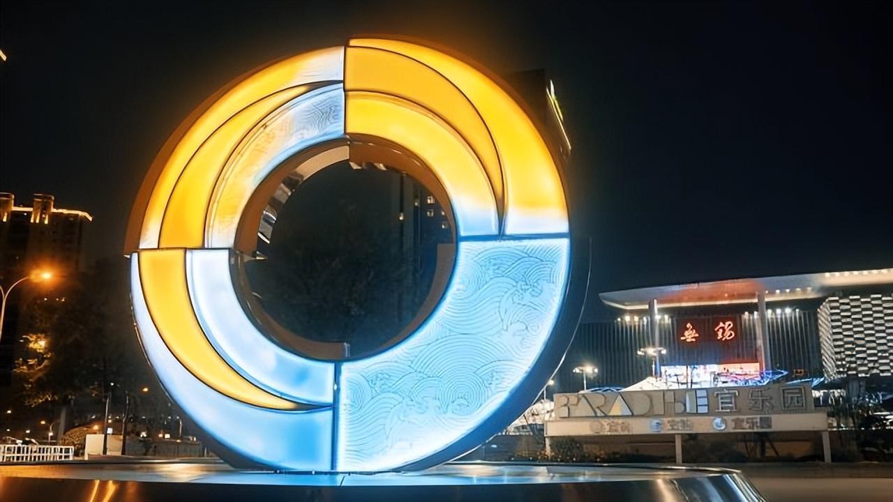 位于东一层的一座艺术雕塑十分亮眼,总重量8吨,高度为7.5米,以车轮为载体,辅以运动轨迹、浪花、阳光等装饰元素,形似湖中冉冉升起的太阳和高速运动的车轮,在刻画地域性特征的同时象征圆满、进取主题。该雕塑是目前国内唯一可以旋转的大型雕塑,结合灯光营造出科技与艺术相融的视觉效果。据介绍,该雕塑名为“生生不息”,这是无锡现有体量最大的、由玻璃琢刻工艺制作而成的广场动态雕塑。