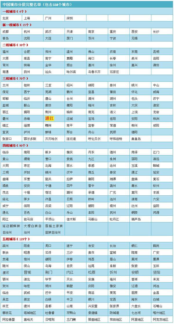 最新全国城市分级榜出炉!快来看看湛江是几线城市?