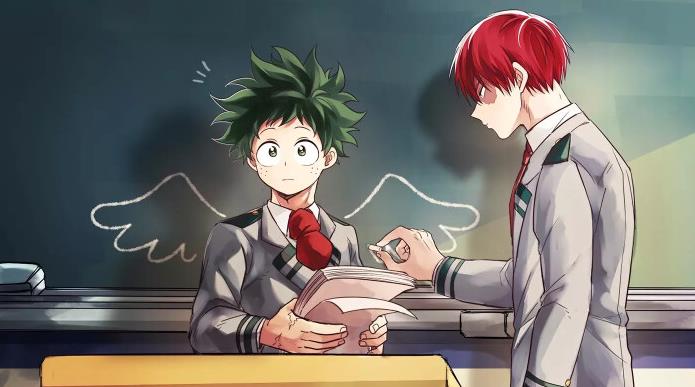 终于到了重头戏了,《我英》里面最为火爆的cp三人组其一。说起来出久和轰焦冻完全是两个相反的人,一个是完全没有个性的普通人,立志要成为英雄,一个是天生双个性的天才级的精英角色,父亲是英雄排行榜上的NO.2,(现在是NO.1)。