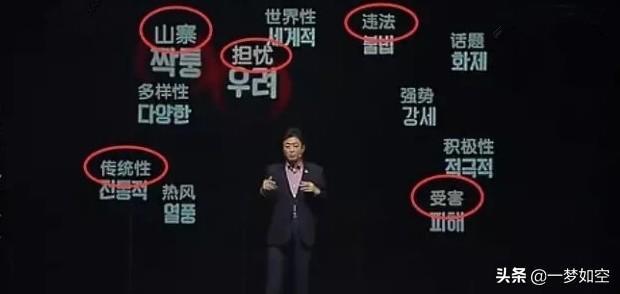 在节目的开场,他提问在场的韩国人对中国是什么样的评价,得出的结论是:“山寨”、“忧虑”、“违法”、“受害”等是大部分韩国人对中国的第一印象。