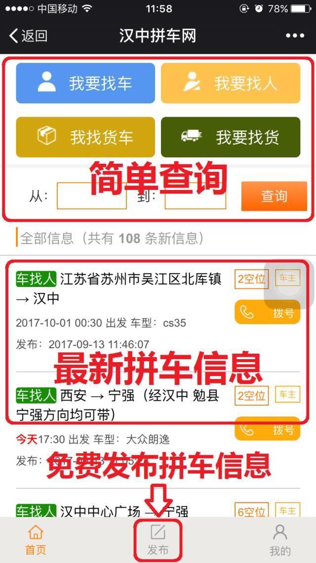 免费发布拼车信息