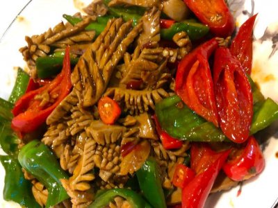 - 爆炒猪腰花 爆炒腰花 准备工作 主材:猪腰子2个、青辣椒1个、红辣椒1个、 辅材:葱姜蒜 香料:酱油1勺、蚝油1勺、十三香1勺、花椒大料、香叶、料酒、淀粉、郫县豆瓣酱 制作方法...