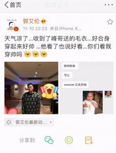 - 郭艾伦晒李易峰送他的新毛衣,毛衣穿出裙子的效果,不愧是你