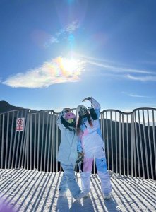 - 李小璐带甜馨滑雪,甜馨和妈妈只差半个头,戴头盔像极了贾乃亮