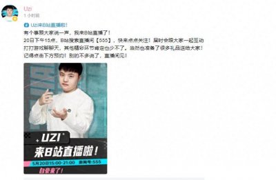 - Uzi将在B站直播,开播日期勾起回忆,房间号另有含义