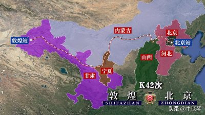 - K42次列车运行线路图:甘肃敦煌开往北京,全程2584公里